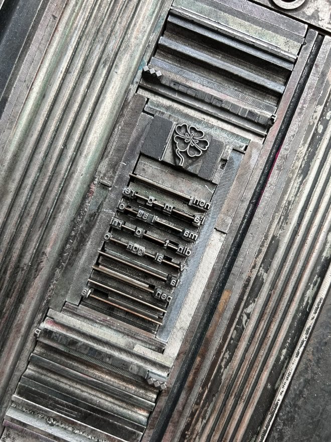 Ci ho messo (appena) un anno e mezzo per rendere concreata un’idea. Ho girato intorno alle parole di Pessoa per molto tempo, letto e riletto il libro, buttato giù bozzetti che non mi convincevano mai abbastanza. Poi un giorno, dai cassetti del mio archivio ho tirato fuori dei fregi liberty, filetti di ottone, un carattere bastone dai tratti essenziali, carta cotone e inchiostro nero. Ho chiuso tre piccole forme, prima di affidare tutto alla mia pedalina.
